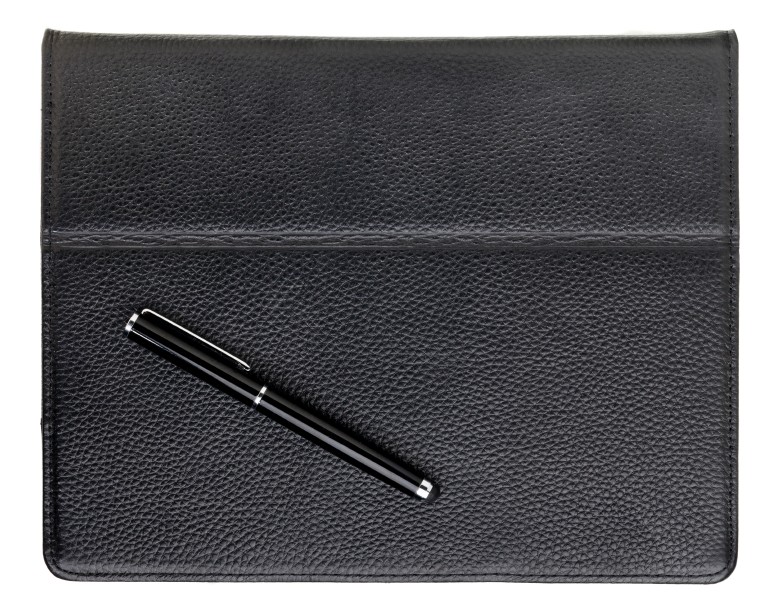 Pebble textured leather tabled case. Top zip closure. Exterior zipper pocket. Fully lined with back wall slip pocket. 8.75" x 11" x .5". Imported.