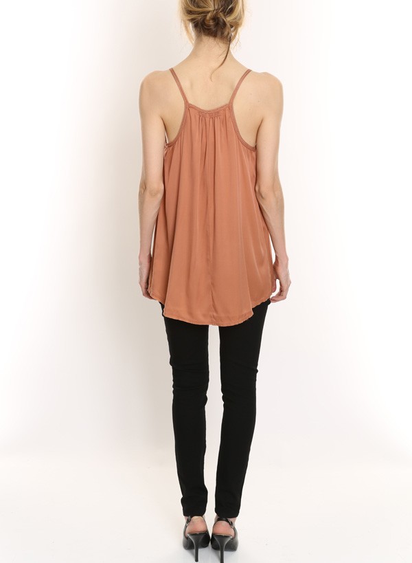 Silk cami. Tie front detail, with hook and eye. Ruched neckline. Loose through the chest and bodice. 100% Silk. Dry clean. - Additional Information